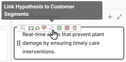Each Canvas hypothesis should be linked to at least one Customer Segment to show how your idea links back to the customer.