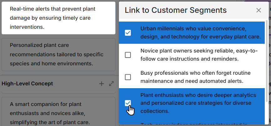 2. Select all of the Customer Segments you wish to link the hypothesis to.