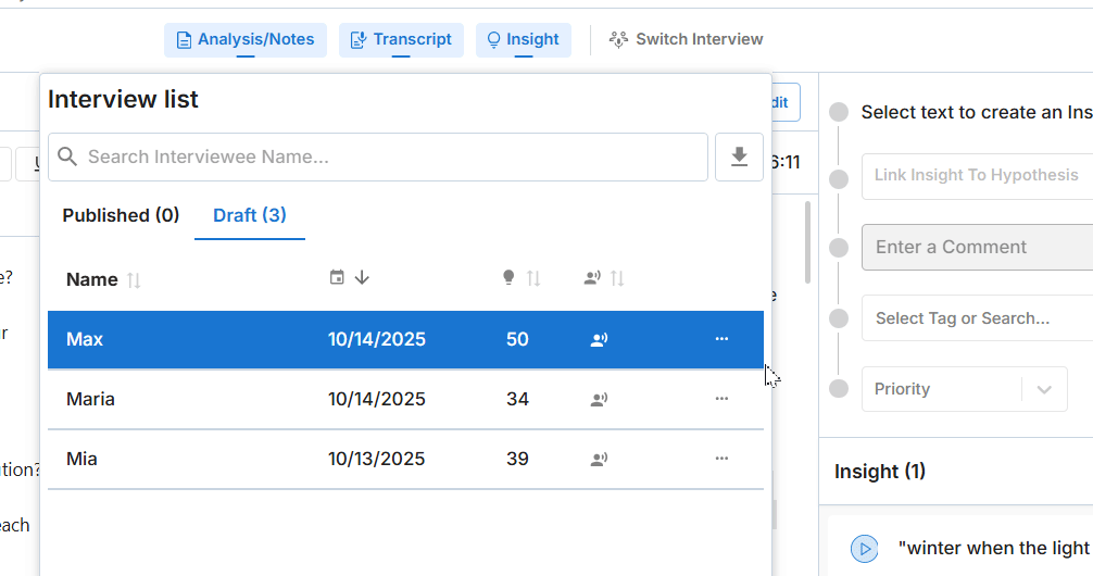 You can also download the Notes, Transcriptions, and Insights of Interviews by following this guide.