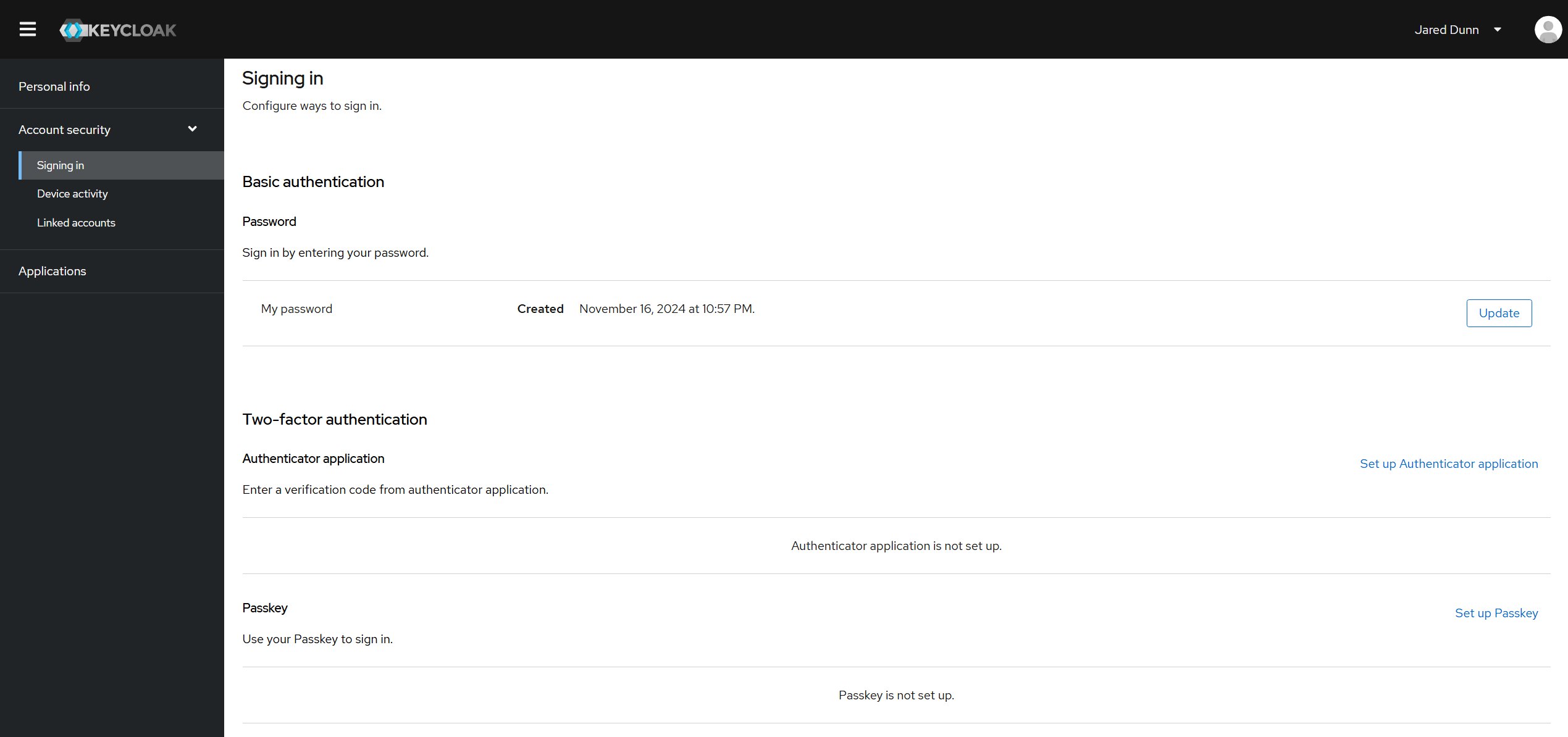 On the Signing In page you can update your password, set up two-factor authentication, or set up a passkey.