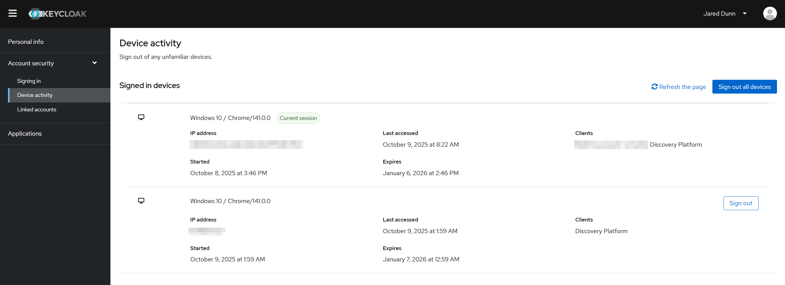 On the Device Activity page you can view your recent sessions and log yourself out of shared computers remotely.