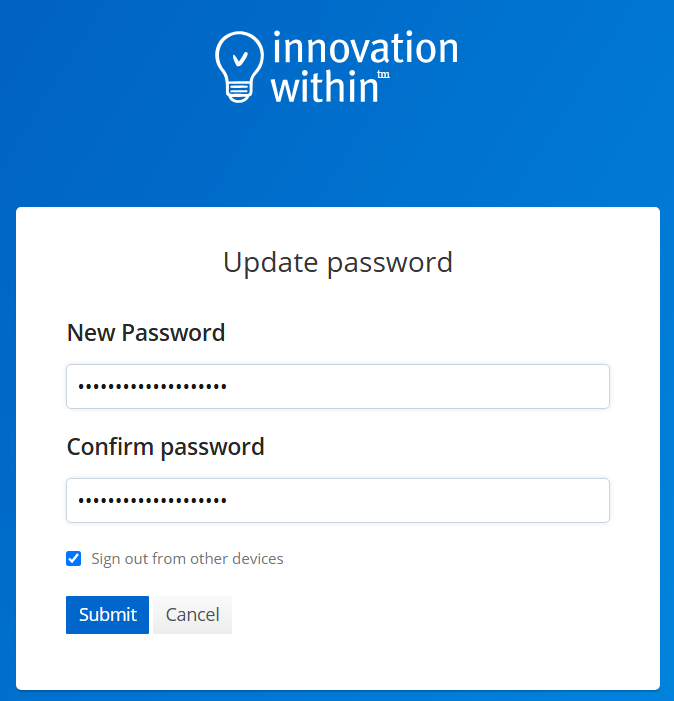 To update your password click the "Update" button, you will then be brought to a new page where you can create a new password.